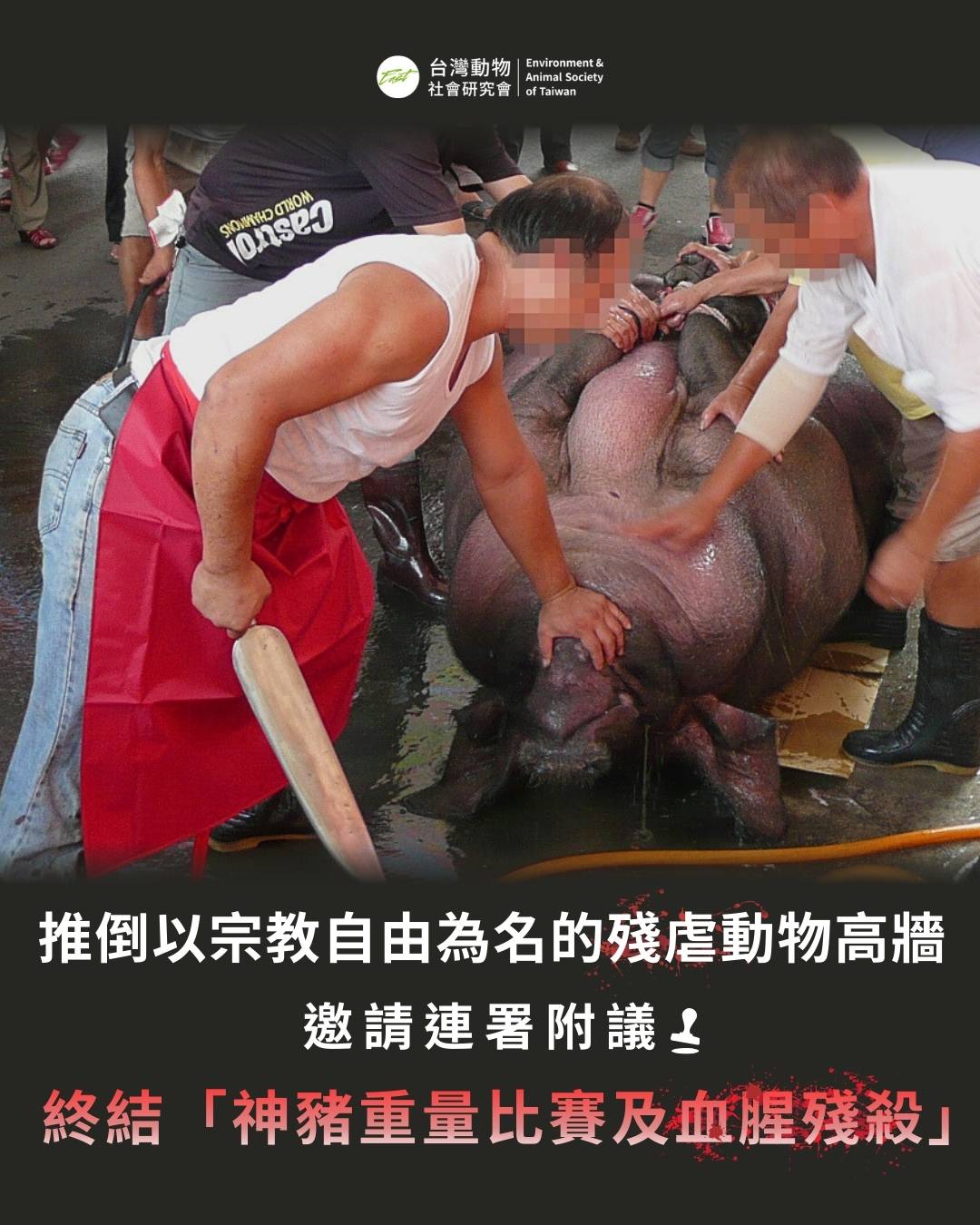 一起努力不懈 推倒以「宗教自由」為名的 殘虐動物高牆 邀請連署附議 終結「神豬重量比賽及血腥殘殺」