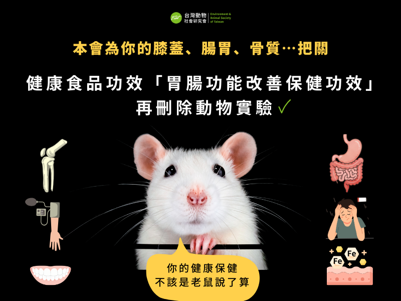【行動進展】健康食品功效宣稱再刪除動物實驗|本會與立法委員林淑芬、衛福部共同努力落實的成果