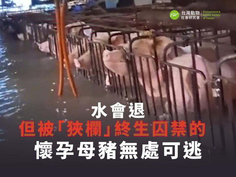 水會退 ,但被「狹欄」終生囚禁的懷孕母豬,無處可逃