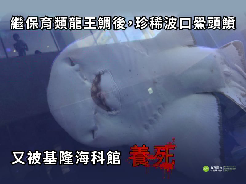 繼保育類龍王鯛後 珍稀波口鱟頭鱝又被基隆海科館養死 本會要求教育部、海委會、動保司調查波口鱟頭鱝死因 檢討館內設施及飼養條件 停止引進、繁殖大型魚類!