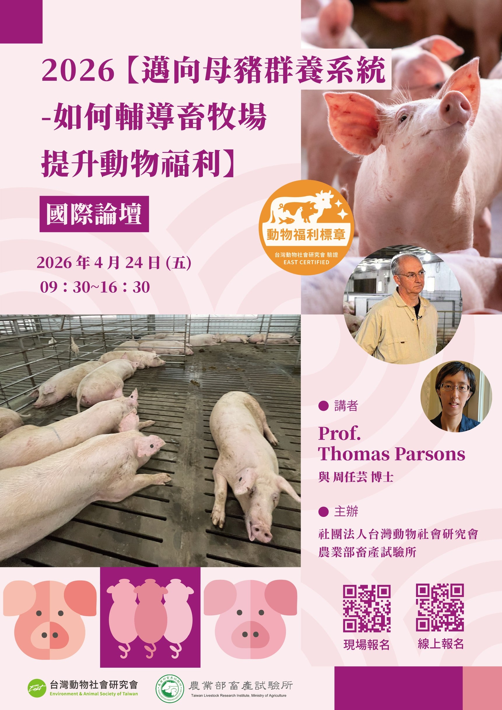 2026【邁向母豬群養系統,促進養豬業永續共善】國際交流系列活動