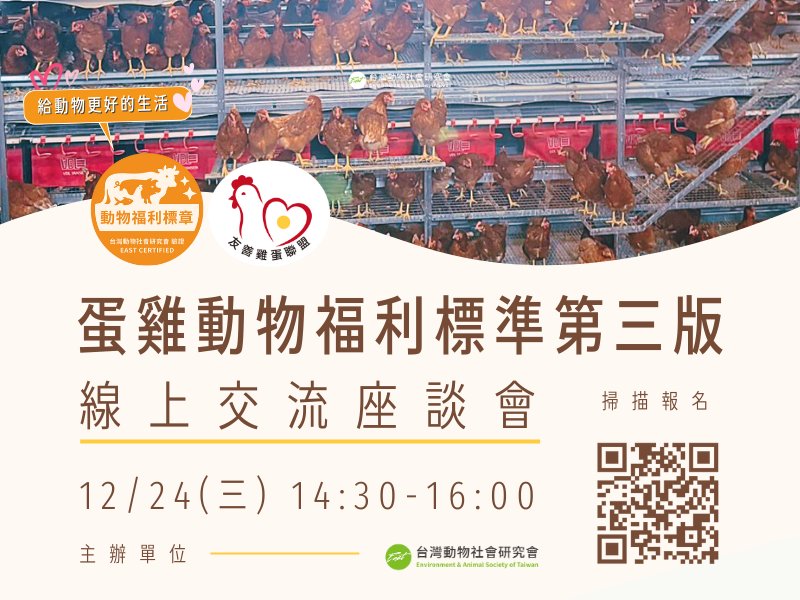 【線上座談會】12/24 蛋雞動物福利標準第三版線上交流座談會