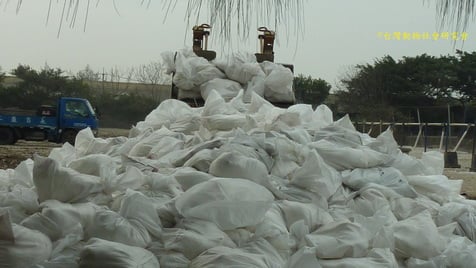 | 撲殺現場先將鴨隻驅趕到圍欄裡,再由防疫人員逐一抓入飼料袋內「活活悶死」!。 | 無正確流程的胡亂撲殺,動物被活活裝袋、拋擲、堆疊,承受窒息、重摔、重壓的折磨,一息尚存者等到化製場、焚化廠再被絞死、燒死,完全違背動物傳染病防制條例「人道撲殺」規定。 |