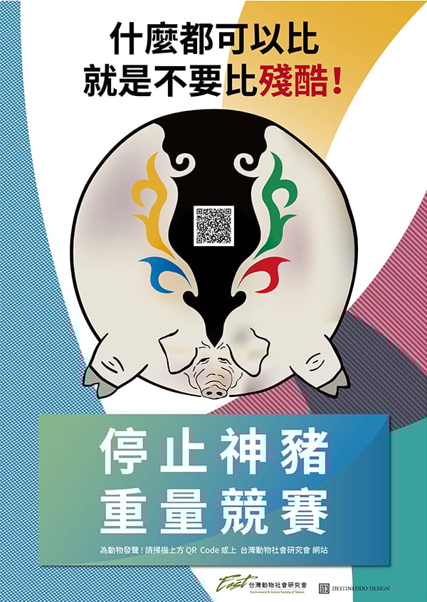 2017臺北世界大學運動會8月19日開幕,來自131個國家的運動好手將在賽場中較勁,發揮運動家精神,挑戰自我體能、技能、耐力與毅力。於此同時,台灣少數廟宇特有的,不斷以「宗教、民俗」為由,將「豬隻重量」設為「競賽標的」的虐待動物賽事--「神豬重量比賽」(義民廟場)也正在暖身,即將於9月10日(農曆七月二十日)揭開序幕!台灣動物社會研究會特別製作「什麼都可以比! 就是不要比殘酷!」影片,呼籲少數廟宇、信徒:「沒事多運動!別再比超重--停止神豬重量比賽!」