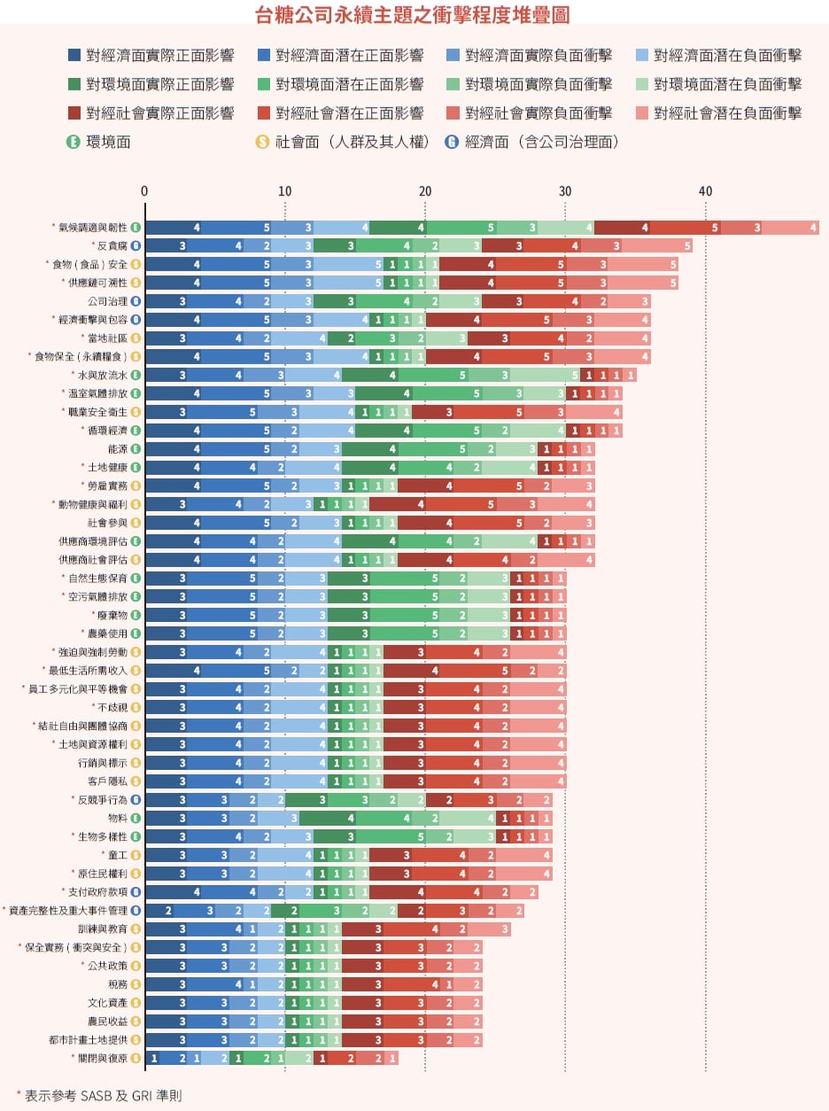 - 8家企業報告書未主動對照SASB進行揭露,其中多為餐飲業及肉品、家禽與乳製品:三商餐飲、天蔥、王品、美食YK(美食達人)、雅茗-KY、新天地、裕國、築間