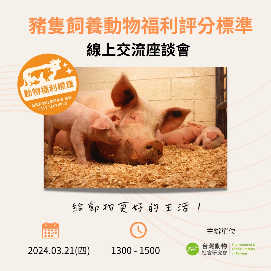 特舉辦線上座談會,分享本會動物福利標章運作、豬場動物福利稽核評分標準。期待透過交流與討論,一起邁向友善畜牧未來。